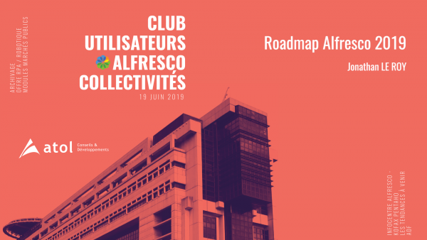 Pour la 5ème année consécutive, Atol CD organise le club utilisateurs Alfresco Collectivités. L’édition 2019 avait lieu le mercredi 19 juin 2019 au Ministère des Finances à Paris Bercy. A cette occasion, Jonathan Le Roy, Business Developer senior chez Alfresco… Continue Reading →