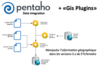 GeoKettle est une version enrichie de Kettle (PDI) incluant des fonctionnalités propres lui permettant de manipuler de l’information spatiale. L’objet de cet article est de présenter les fonctionnalités globales de l’outil et d’en faire ressortir les avantages et limites.